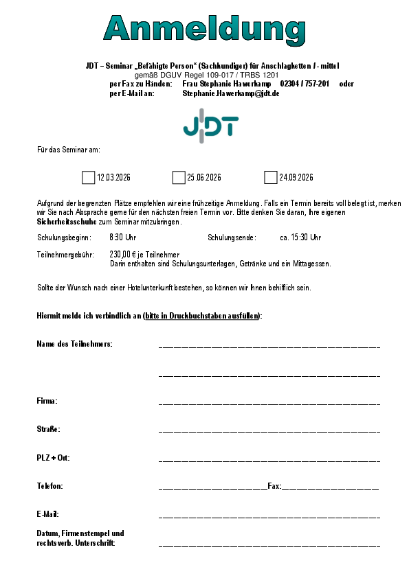 Anmeldung Inhouse-Schulung